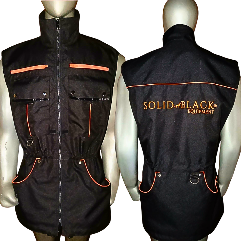 Chaleco técnico Solid Black para entrenamiento, con bolsillos combinables y diseño funcional para premiación y trabajo intensivo.